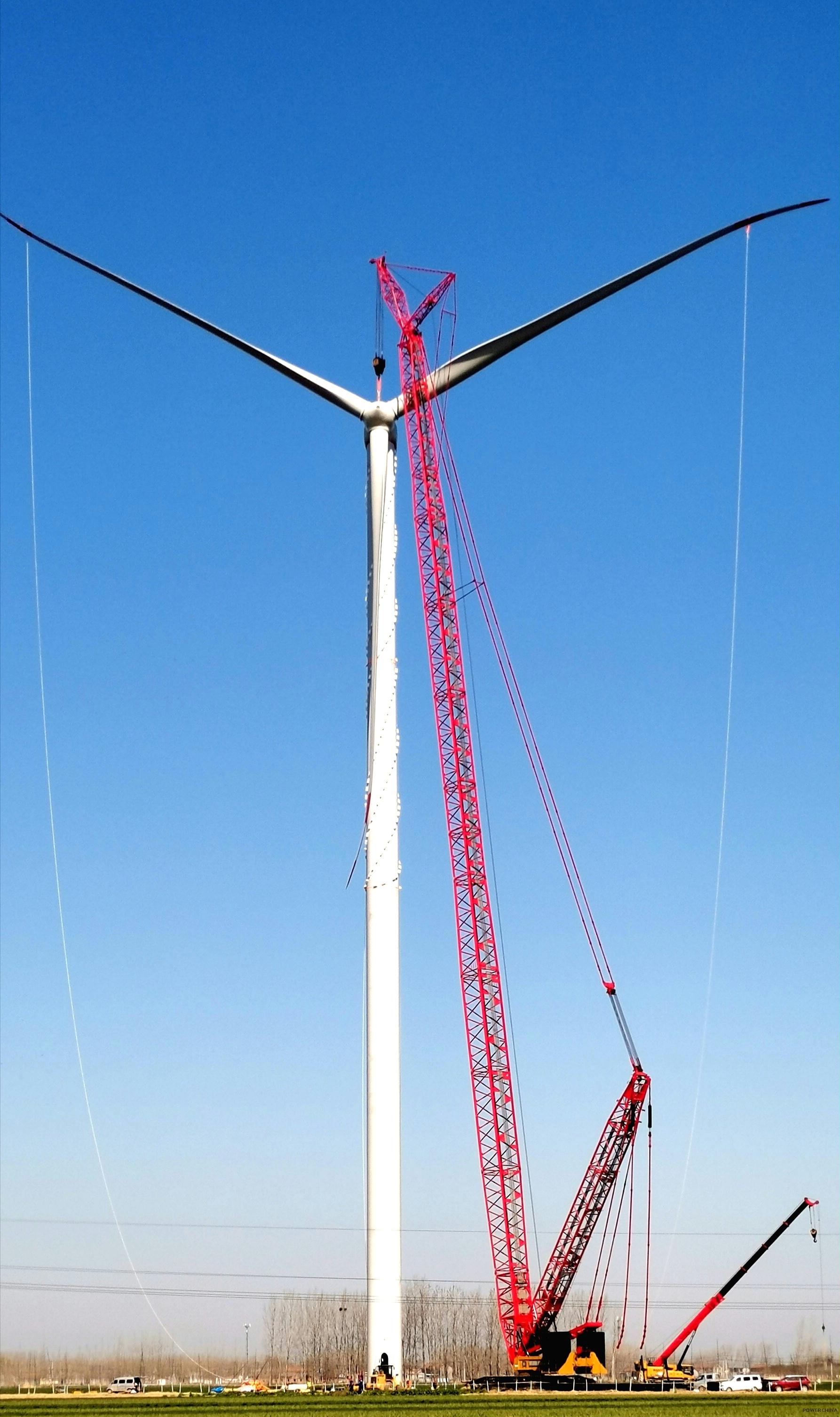 山東東明西南二期100兆瓦風(fēng)電項(xiàng)目首臺(tái)風(fēng)機(jī)吊裝完成